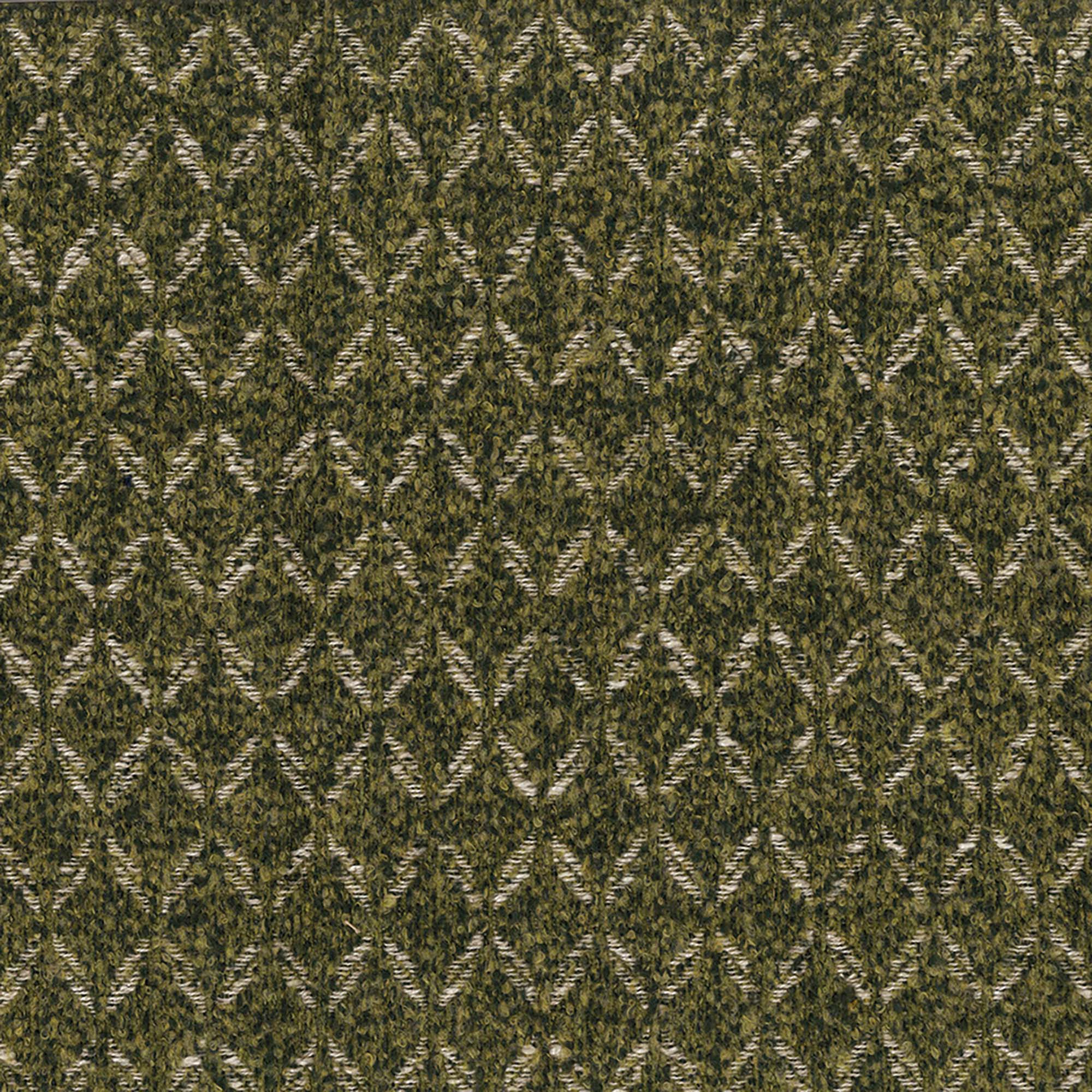 2色の糸を撚り合わせた霜降り効果のある糸によって表現されたS字曲線のトレリス柄。