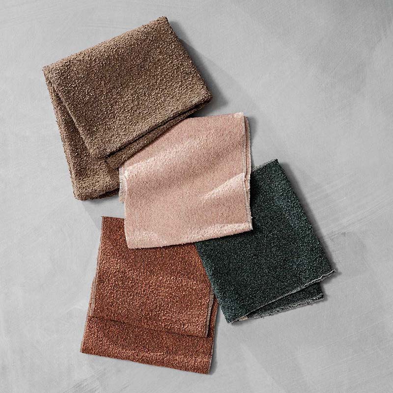 高級感のあるシュニールとテクスチャー感のあるブークレ糸を使用し、手触りにこだわったモダンでクラフト的な要素を感じさせる生地。コーディネーションに取り入れやすい幅広い色展開が魅力です。